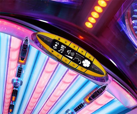 Intuitive function control for customers before the tanning session. Easy access to maintenance and service settings for operators.